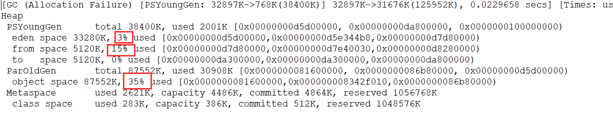 从上图我们可以看出 Eden 区内存几乎已经被分配完全(即使程序什么也不做,新生代也会使用 2000 多 k 内存)。